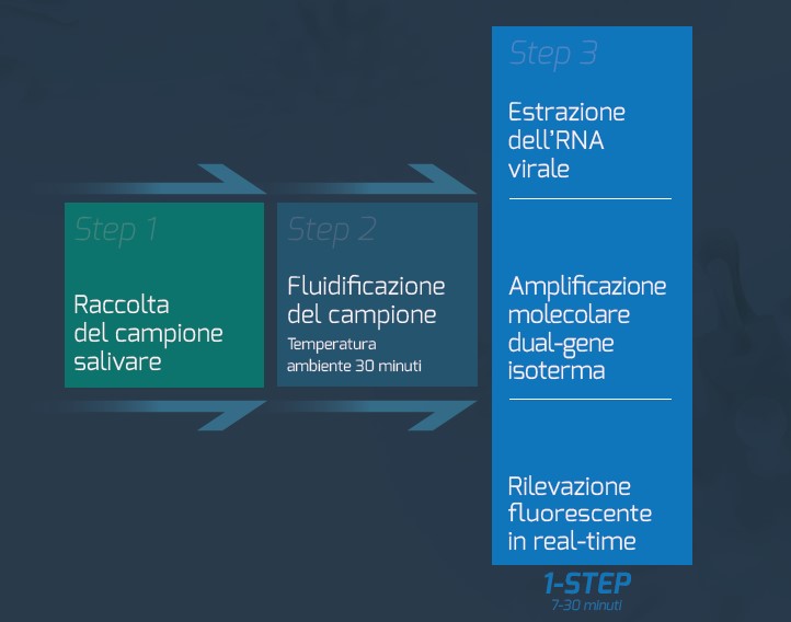 - Campione non invasivo: la scelta della saliva, per risolvere il problema della invasività del tampone naso-faringeo ed effettuare analisi ripetute e frequenti.